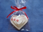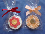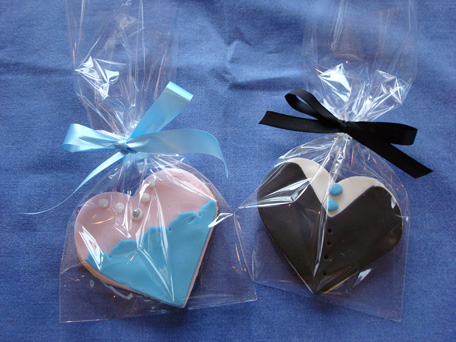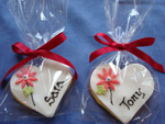 The favours I offer are produced using a rich shortbread pastry base which is then individually decorated using a variety of icings and designs. They come in a wide range of shapes, styles and designs, they are presented in a clear bag and finished with ribbon and bow in a choice of colours to match your scheme.